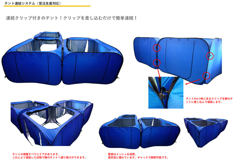 連結クリップ付きのテント!クリップを差し込むだけで簡単連結!